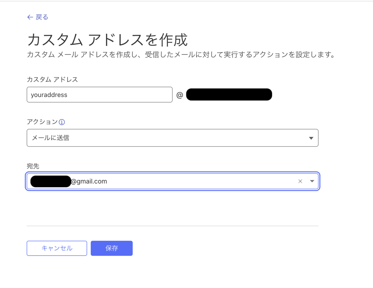 これだけで、独自のメールアドレスを発行でき、Gmailアドレス等に転送することができます!