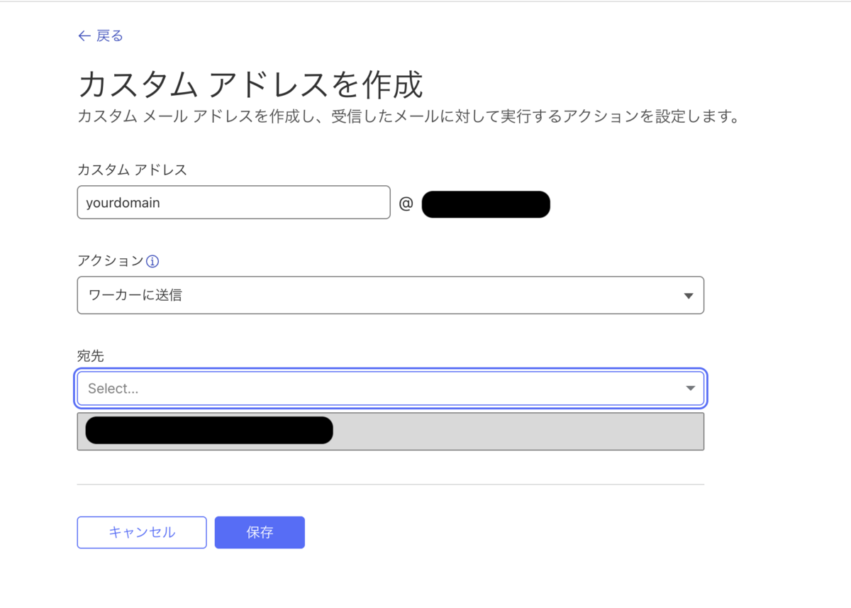 アクションでは「ワーカーに送信」を選択します。デプロイに成功していれば、宛先に作成したWorkerが選択肢として表示されます。